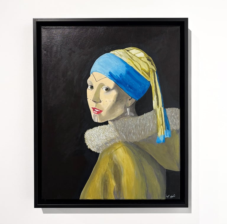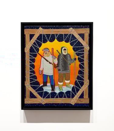 Charlie Tukalak est un artiste inuk dont la pratique explore l'identité, la mémoire et les récits culturels du Nord. À travers des scènes de la vie quotidienne, des portraits symboliques et des réinterprétations contemporaines d'images iconiques, il met en valeur la richesse visuelle et spirituelle de la culture inuite.