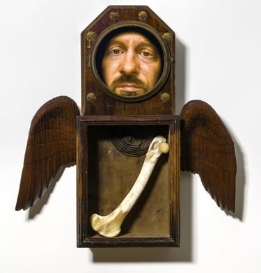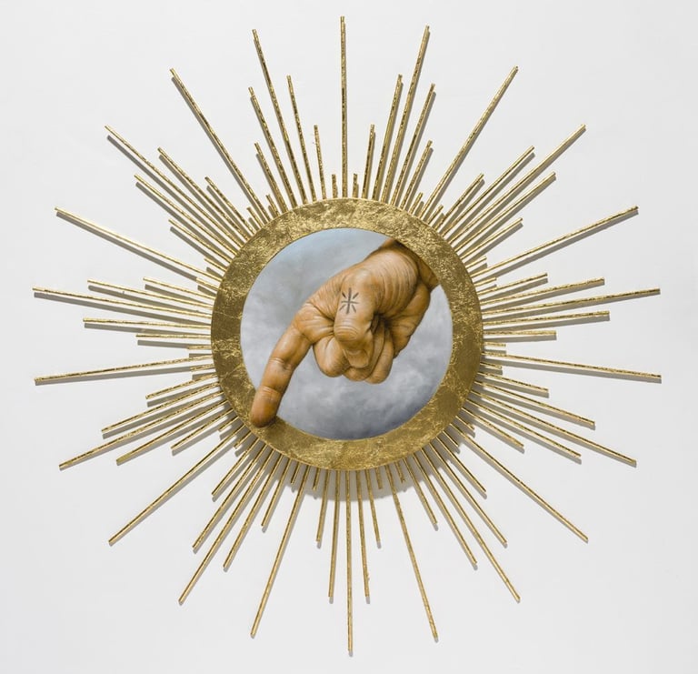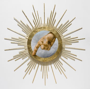 Son univers visuel, nourri de l'imagerie des sideshows, du théâtre forain, des primitifs flamands et de l'iconographie religieuse, il marie le sacré et le grotesque avec une ironie délicate. Labourdette compose des figures énigmatiques qui oscillent entre beauté et malaise, entre reliquaire et memento mori.
