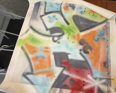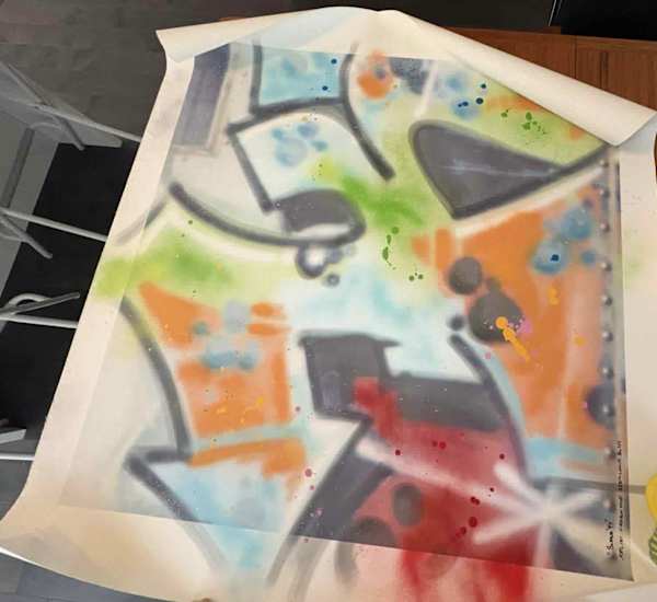Medium: Frabiano, encre, pastel, peinture en aérosol