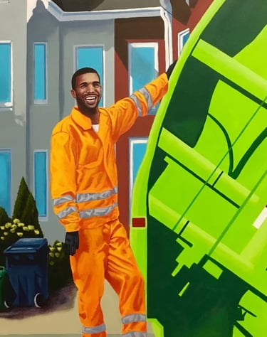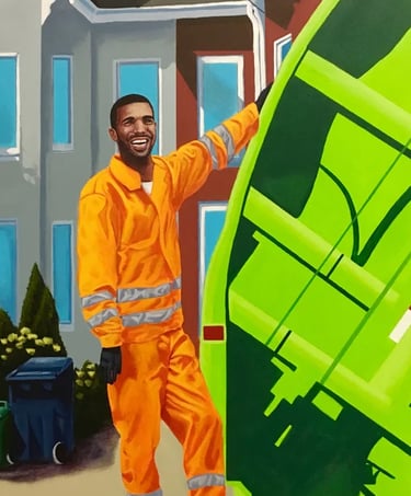 À travers des œuvres vibrantes réalisées à l’acrylique, Pollard explore le symbolisme culturel ainsi que les tensions entre la possession et l’expérience humaine. Par l’utilisation de couleurs franches, de contrastes marqués et du jeu entre espaces positifs et négatifs, il cherche à susciter une sensation de proximité et un désir de contact physique chez le spectateur, transformant l’acte de regard en une expérience sensorielle.